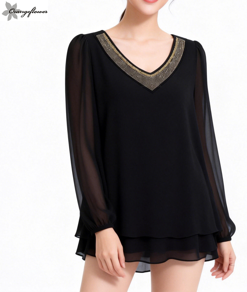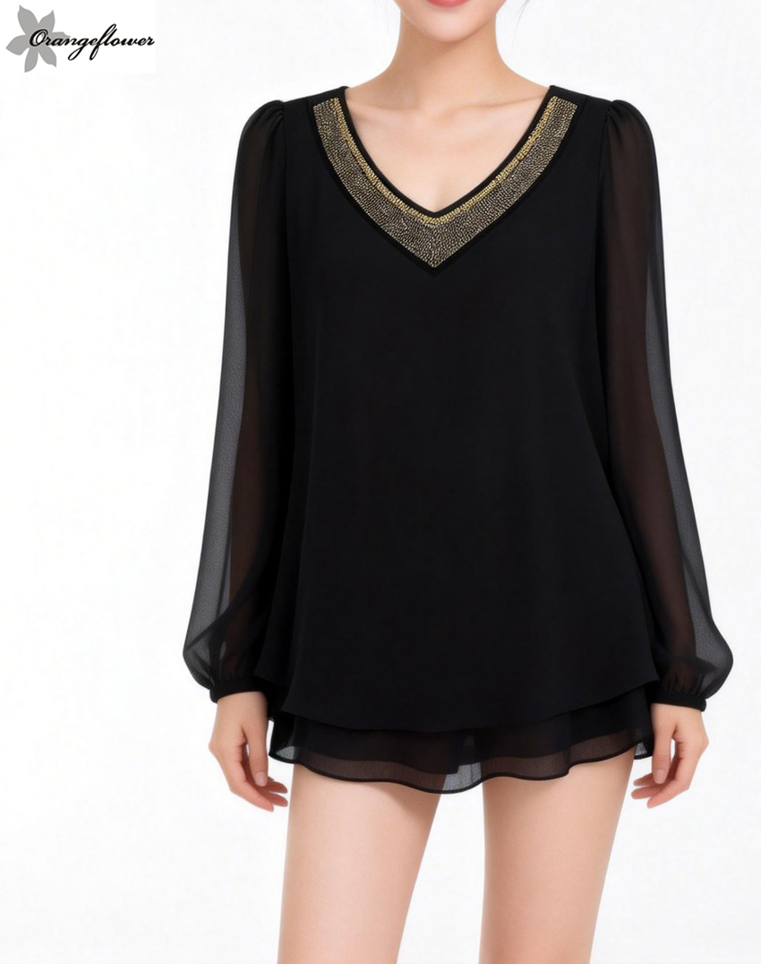 orange flower欧美风雪纺打底衬衫