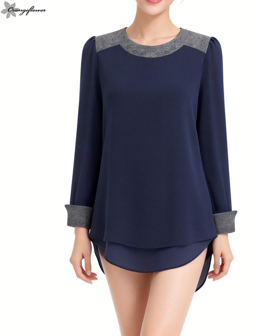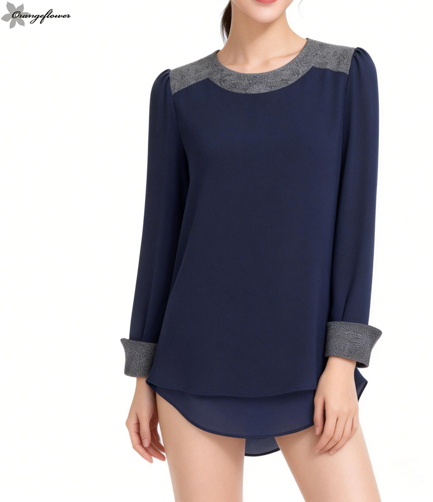 orange flower欧美风格显瘦宽松圆领衬衫针织雪纺
