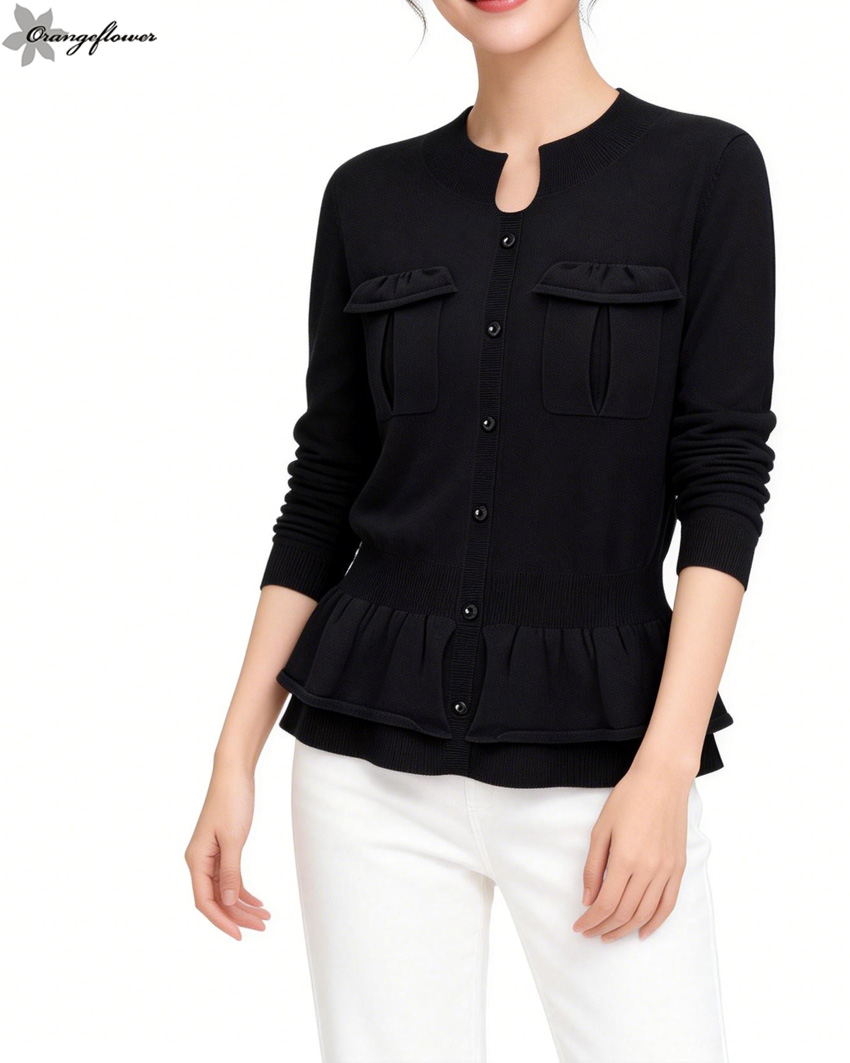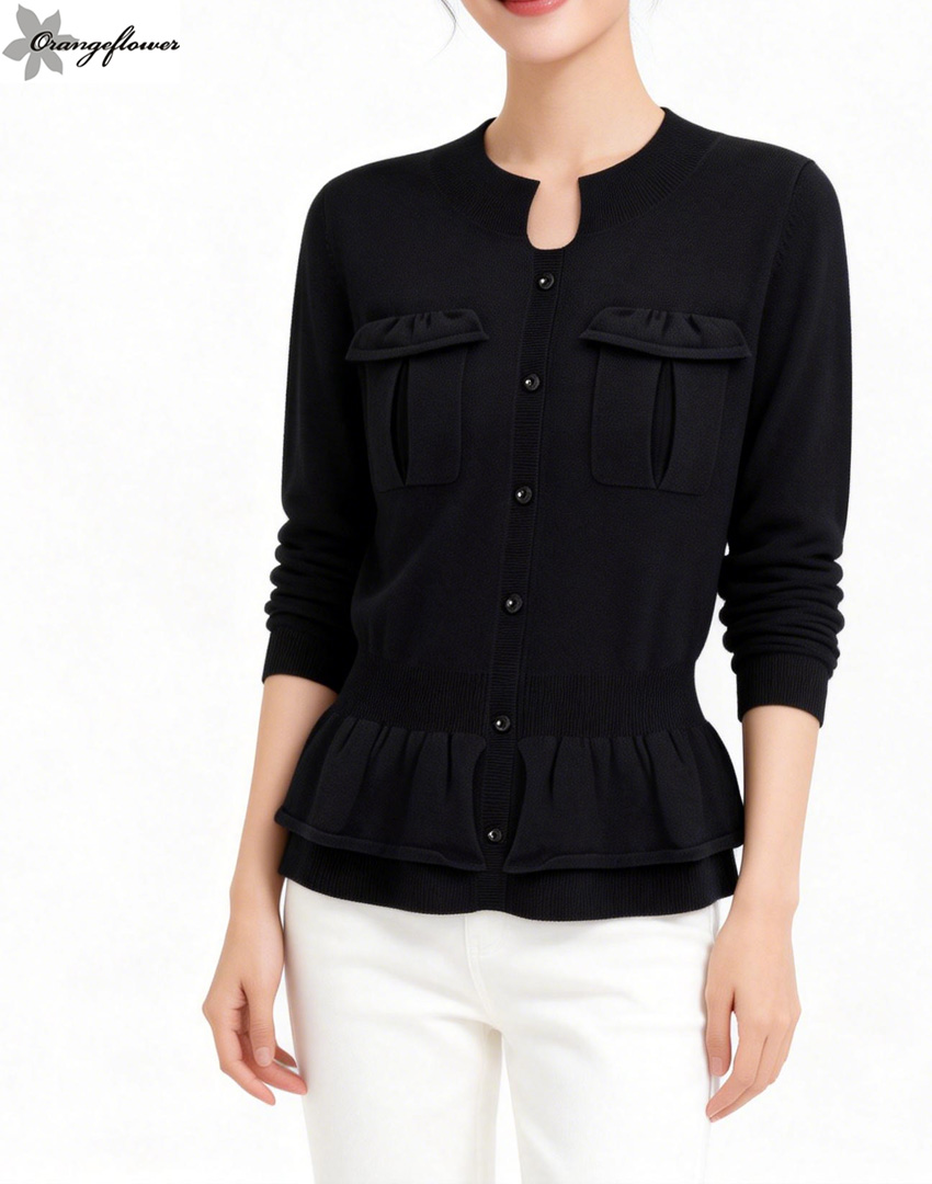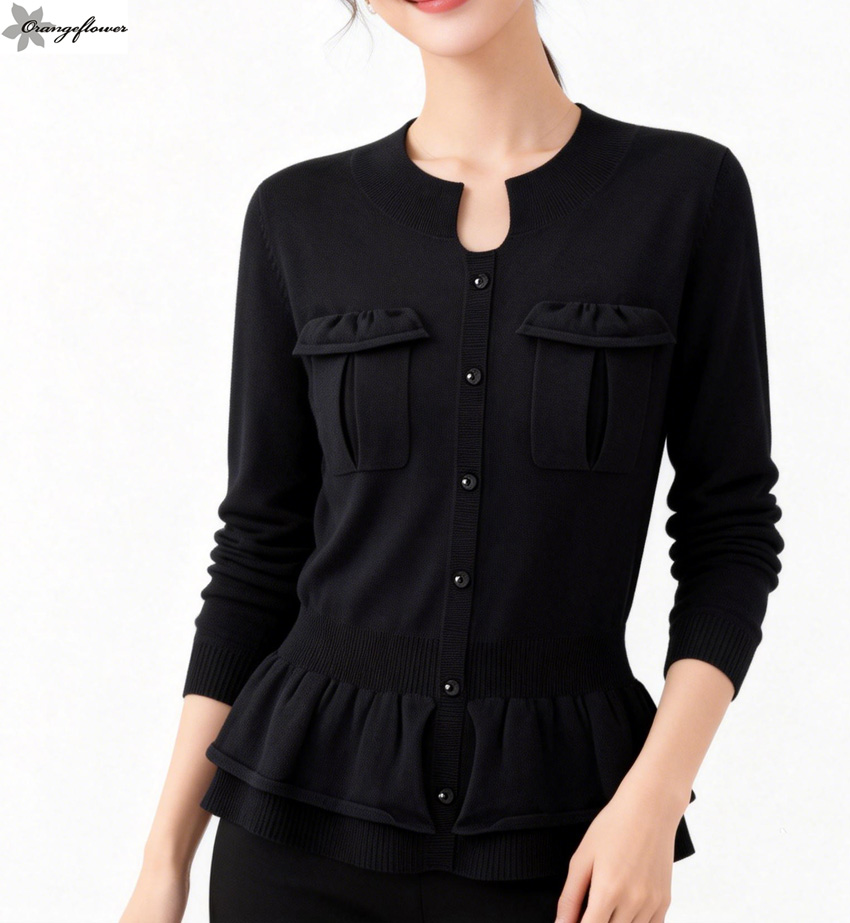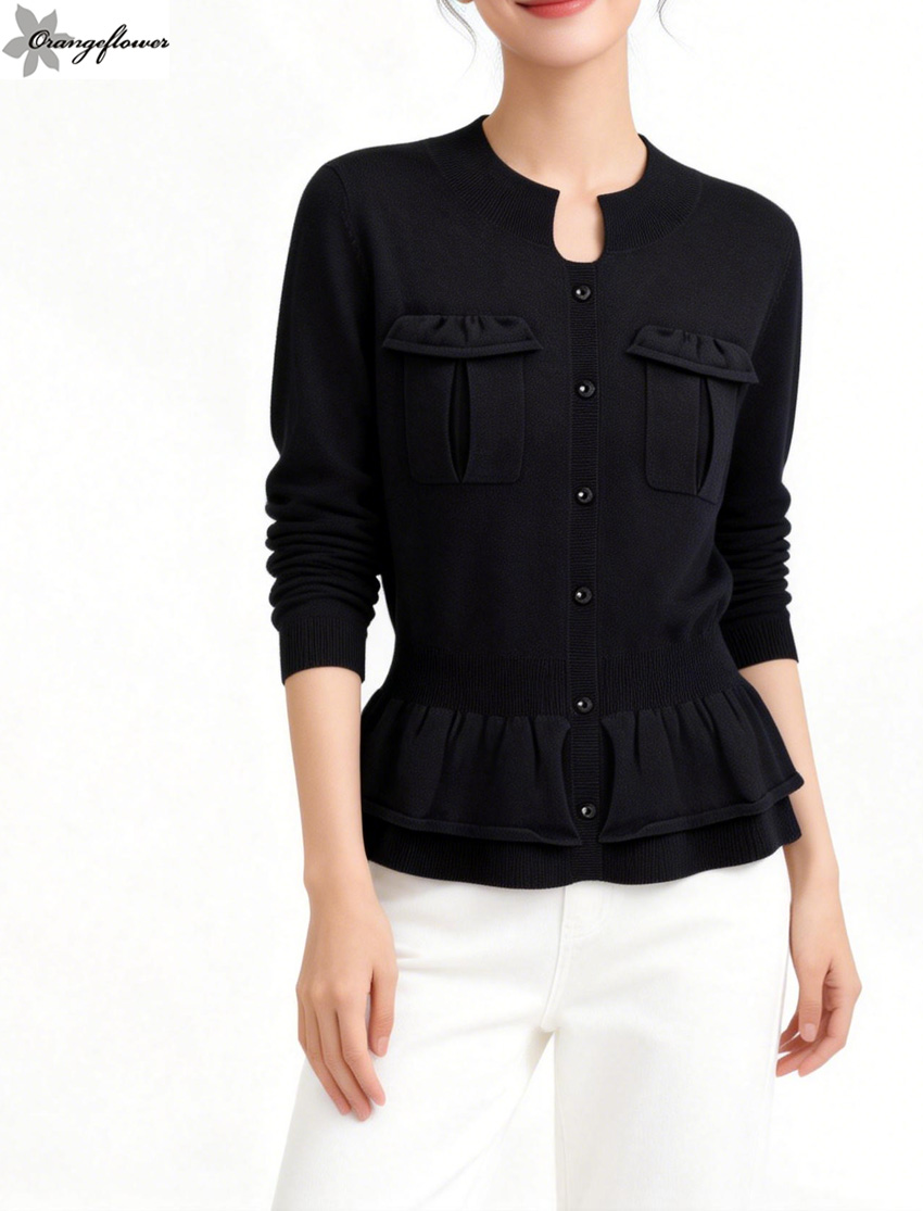 orange flower欧美风格时尚修身针织毛衣外套开衫春秋款