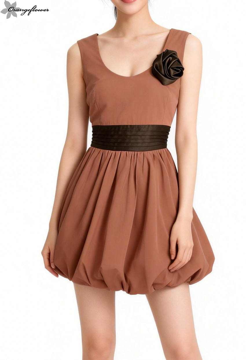 orange flower欧美风时尚性感低胸连衣裙