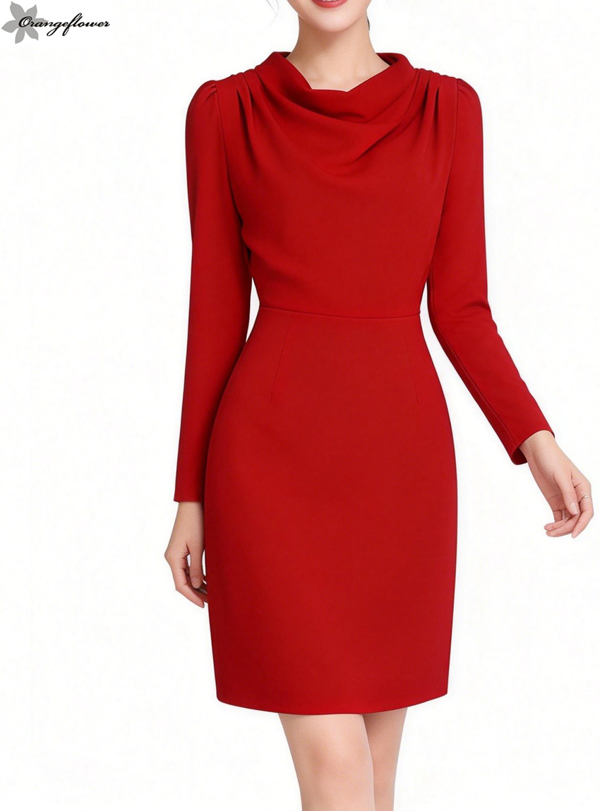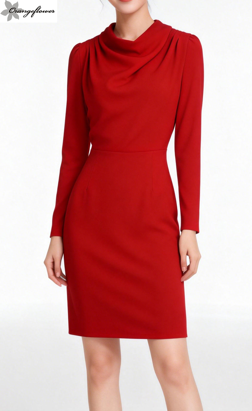 orange flower欧美风时尚高级感气质女神职业装OL连衣裙